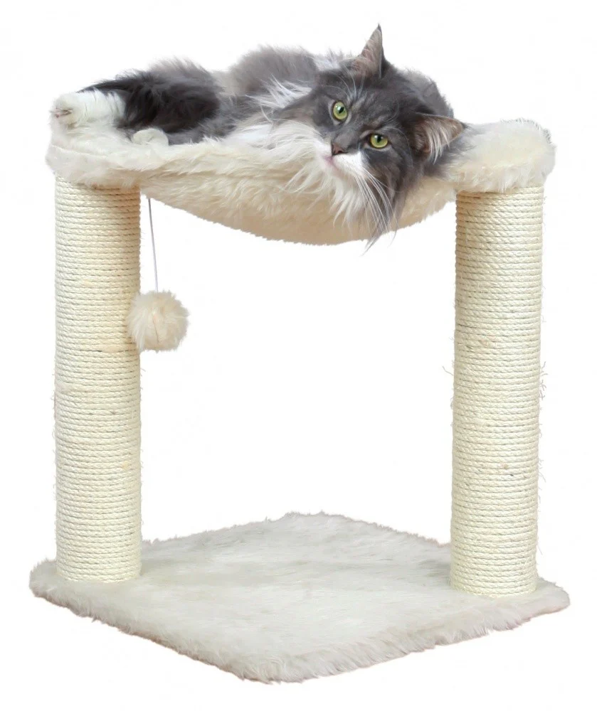 Le socle et le couchage de l’arbre à chat Baza sont en fourrure et ses deux poteaux sont recouverts de sisal. Aucune hésitation pour cet arbre à chat dont la couleur crème s’adaptera obligatoirement avec votre intérieur.