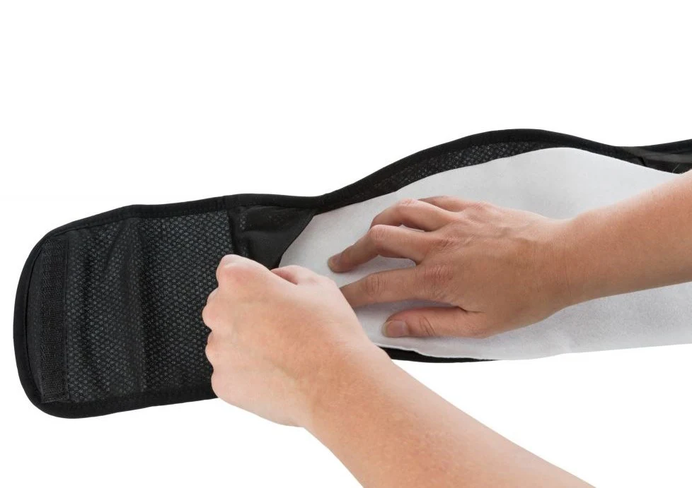 - Système d’attache pratique : s’enroule autour de l’abdomen et s’attache avec une bande velcro