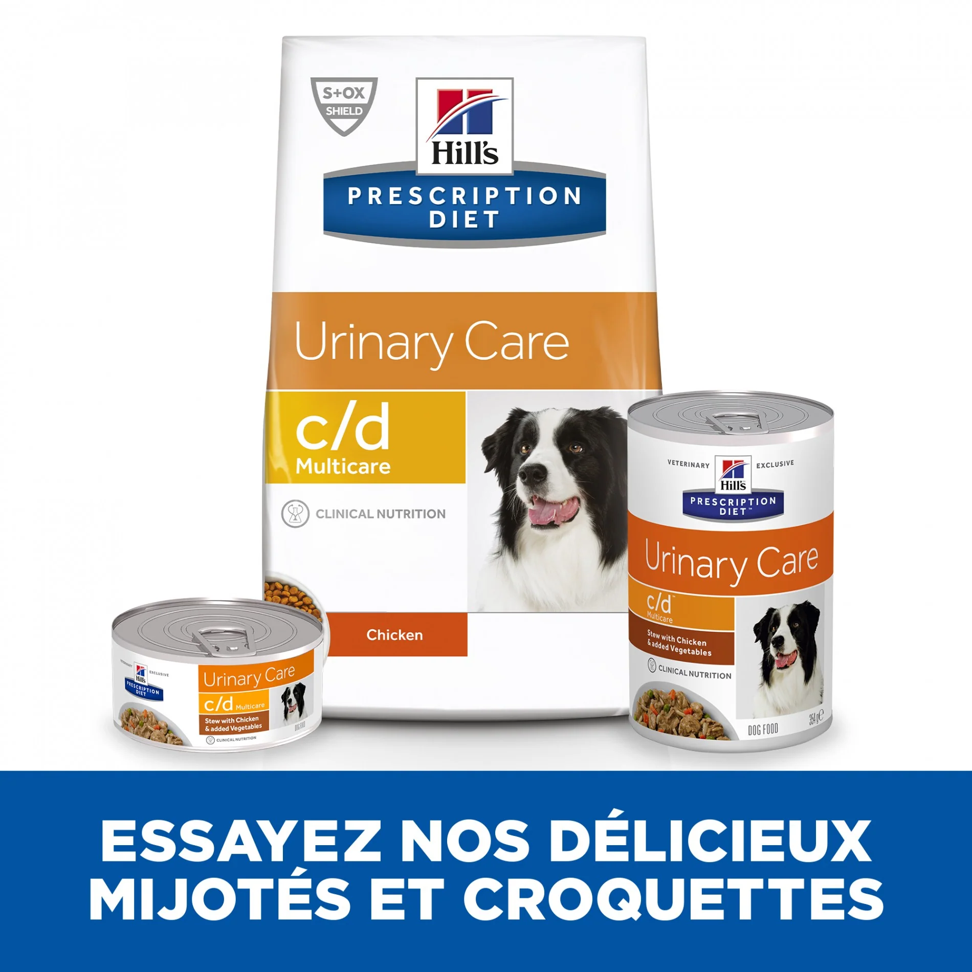 Les mijotés Prescription Diet Canine c/d multicare aide à dissoudre les calculs de struvite. Ces mijotés sont indiqués dans la gestion à long terme des chiens sujets aux calculs urinaires :