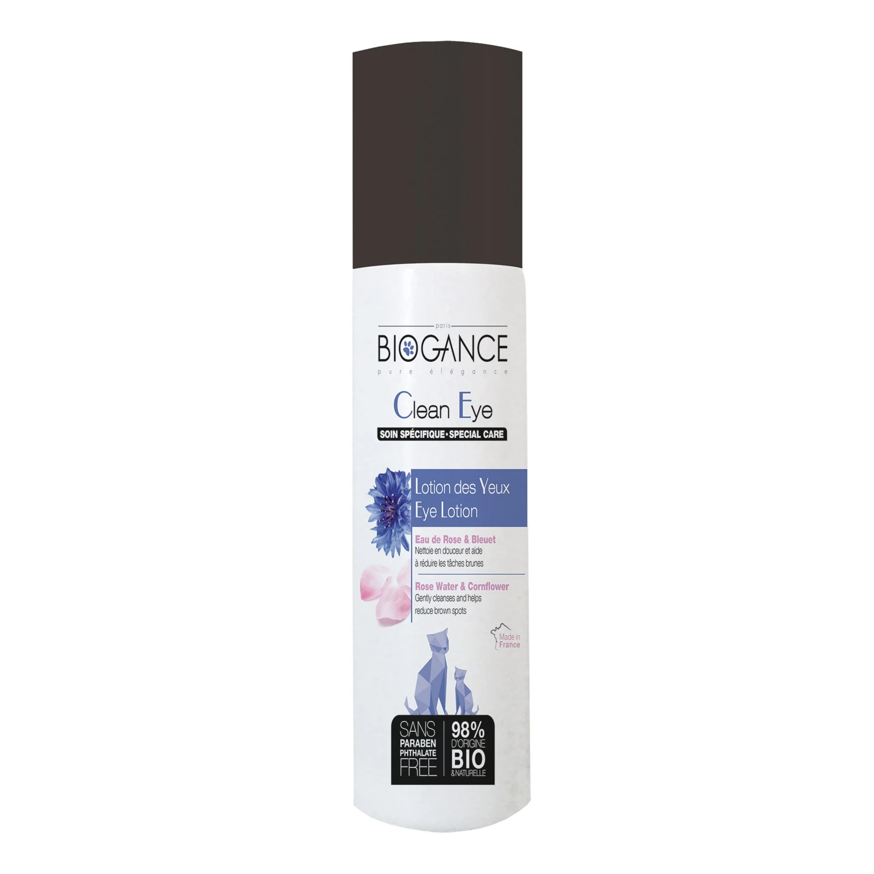 La lotion nettoyante Biogance Clean Eye est parfaite pour nettoyer en douceur le contour des yeux et muqueuses de votre chat. Spécialement formulée à base d’eau de rose et de bleuet, cette lotion élimine en douceur les impuretés (marque jaune, taches) et protège le pelage de l’acidité des larmes.