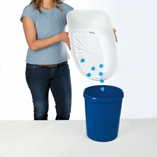 - Interchangez les bacs : le bac supérieur contient la litière propre, le bac inférieur est vide.