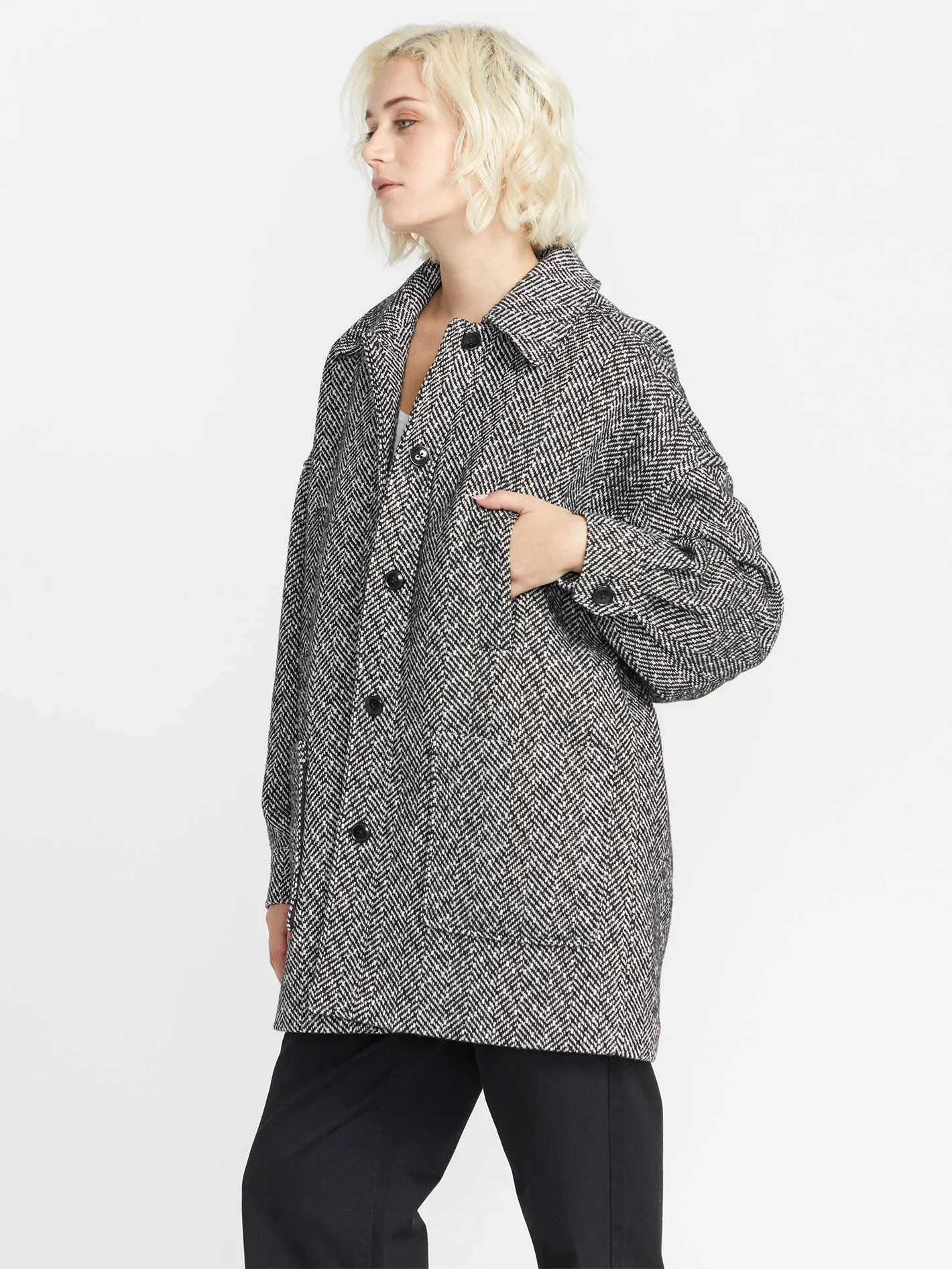 ● Poche chauffe-main passepoilée sur la poitrine et poche plaquée au bas