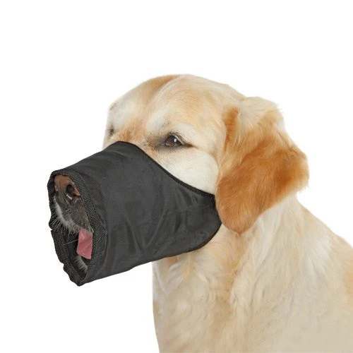 La muselière pour chien est en nylon souple et résistant. Elle épouse la forme du museau et s’attache facilement grâce à une lanière réglable, derrière les oreilles.
