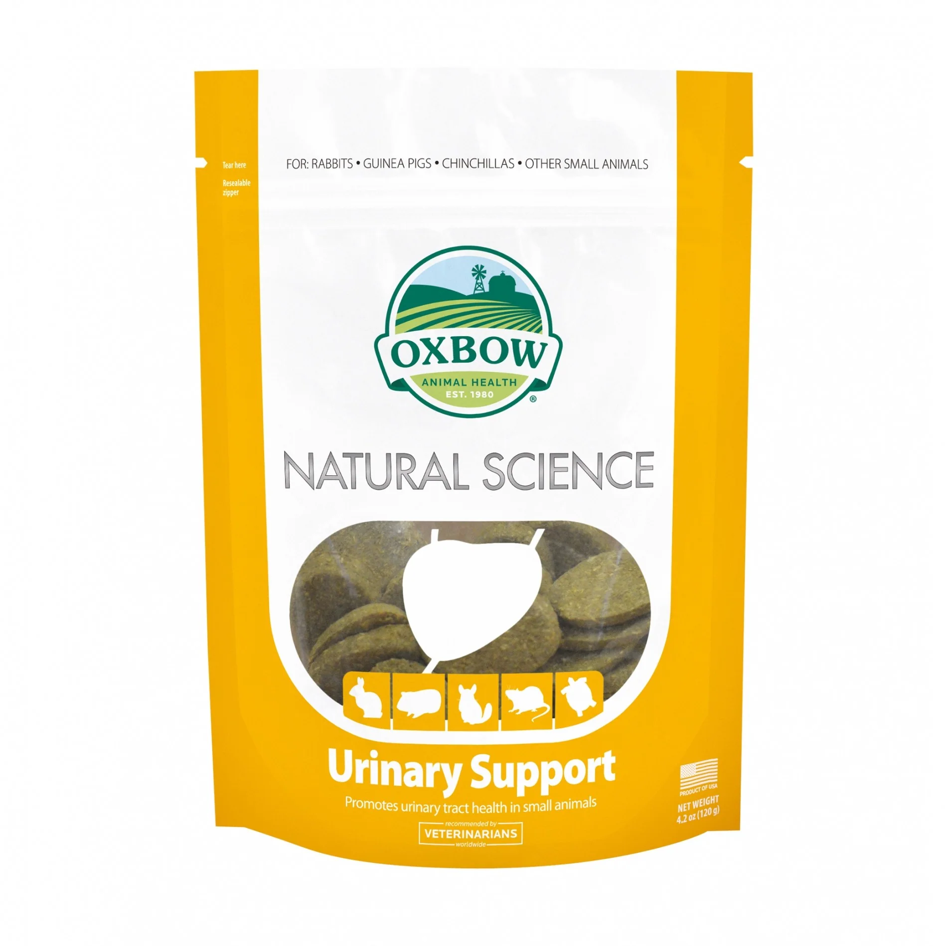 Natural Science – Urinary Support est un complément riche en fibres destiné au soutien de la santé urinaire de votre animal de compagnie : lapin, cobaye, chinchilla, rat, octodon, hamster, gerbille… L’apport de cranberry et de pissenlit protège la fonction urinaire, alors que des herbes telles que les racines d’astragale aident au bon fonctionnement des reins.