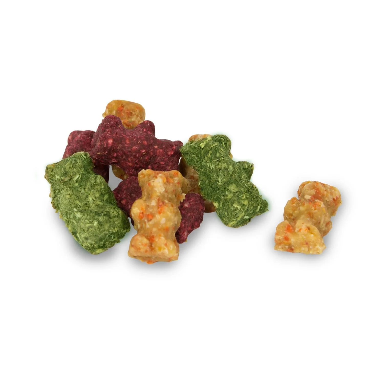 Garanties sans céréale, ces friandises en forme d’ours sont composée de foin, de carotte et de betterave pour un snack coloré et 100% naturel !