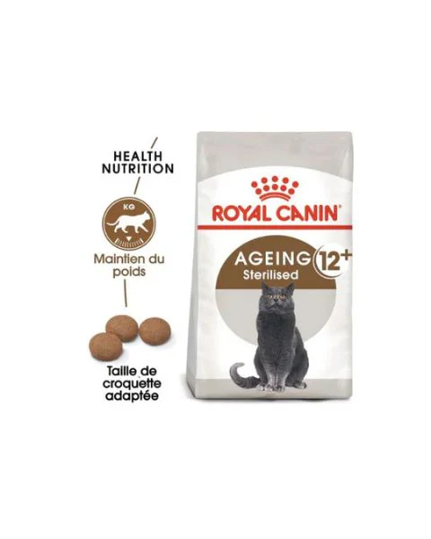 Les croquettes ROYAL CANIN® Ageing Sterilised 12+ sont spécialement conçues pour répondre aux besoins nutritionnels de votre chat senior stérilisé de plus de 12 ans.