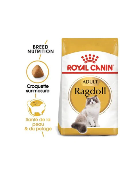 Les croquettes ROYAL CANIN® Ragdoll Adult ont spécialement été conçues pour répondre aux besoins nutritionnels de votre chat Ragdoll adulte, âgé de plus d’un an.