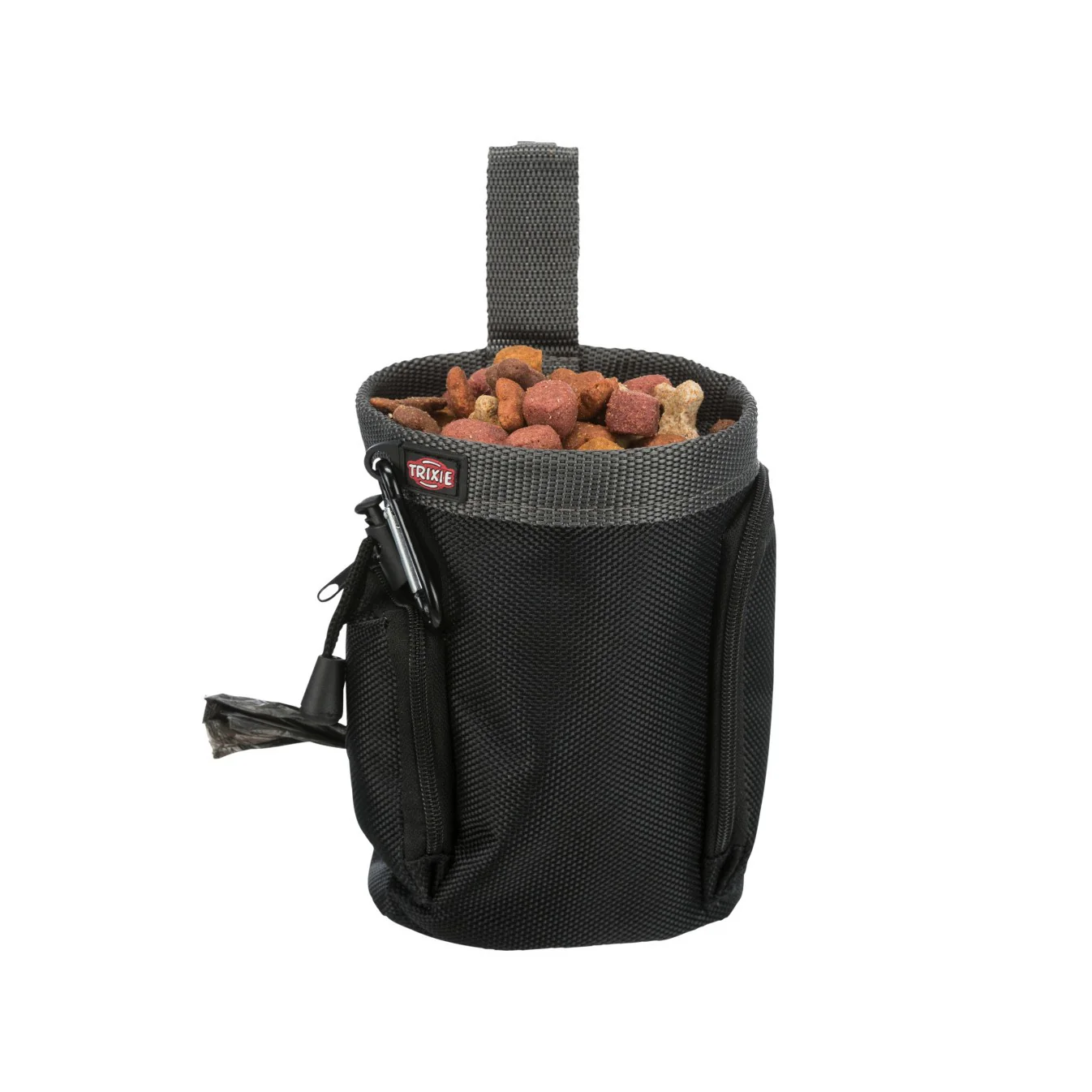 - 2 pochettes intégrées : 1 pour les sachets de ramasse-crottes et 1 à fermeture Éclair