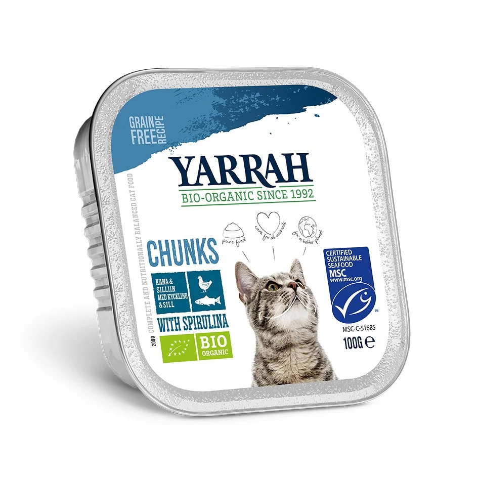 Les bouchées biologiques Yarrah pour chat constituent un délicieux repas à base de bouchées moelleuses en sauce avec beaucoup de viande ou de poisson. Elles conviennent aux chatons et aux chats de tous âges.