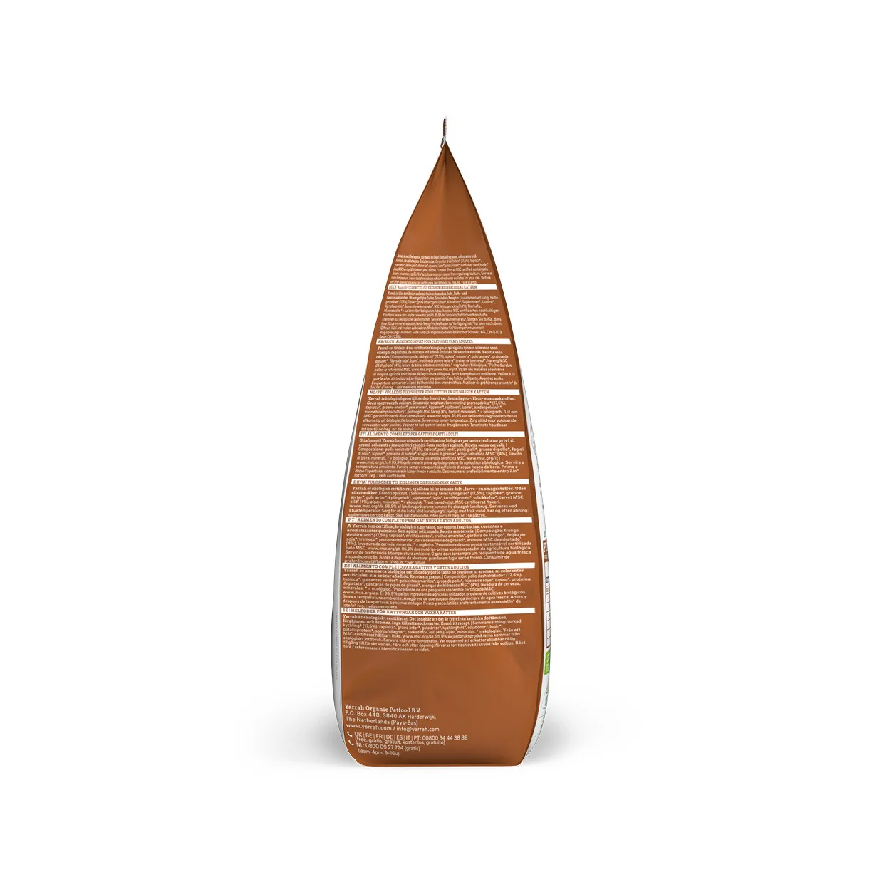 Les croquettes Yarrah au hareng MSC* et au poulet constituent un aliment Bio, complet, équilibré et délicieux. Les croquettes Yarrah sont composées de poulet biologique (28%) élevé en liberté et nourri de produits purs et biologiques, de hareng MSC* riche en oméga 3&6 dont les effets sont bons pour la peau et le pelage.
