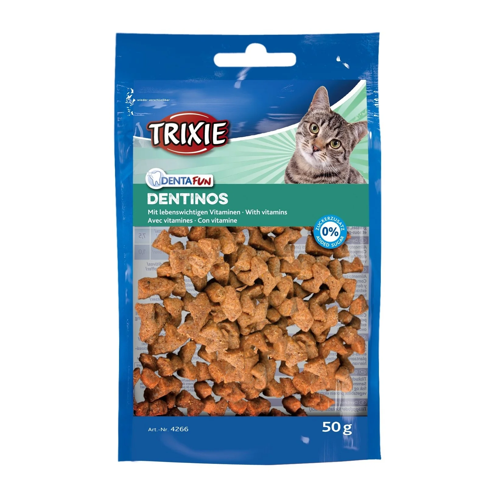 Les friandises Trixie Denta Fun Dentinos sont riches en vitamines et sans addition de sucre. Leur forme et leur texture aident à nettoyer les dents et l’espace interdentaire.