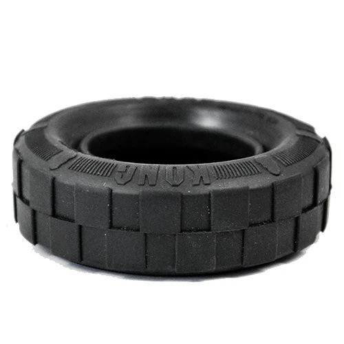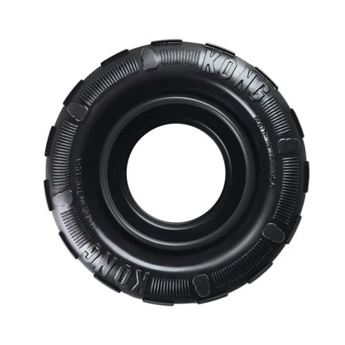 Le jouet pour chien KONG Traxx en forme de pneu convient aux chiens aux mâchoires puissantes.