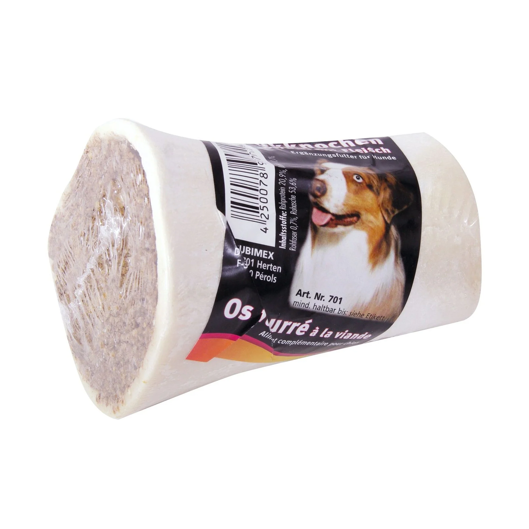 Faites plaisir à votre chien avec cet os de boeuf fourré à la viande Bubimex !